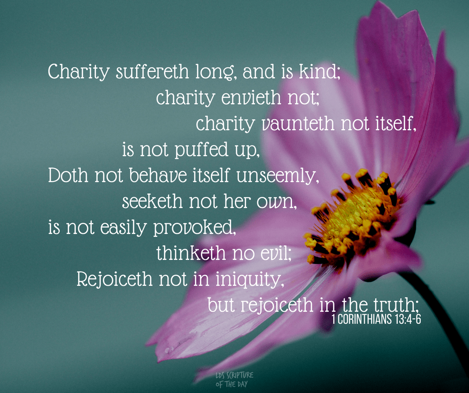 “Perhaps the greatest charity comes when we are kind to one another, when we don’t judge or categorize someone else, when we simply give each other the benefit of the doubt or remain quiet. Charity is accepting someone’s differences, weaknesses, and shortcomings; having patience with someone who has let us down” (Goddard, 2009, p.116).